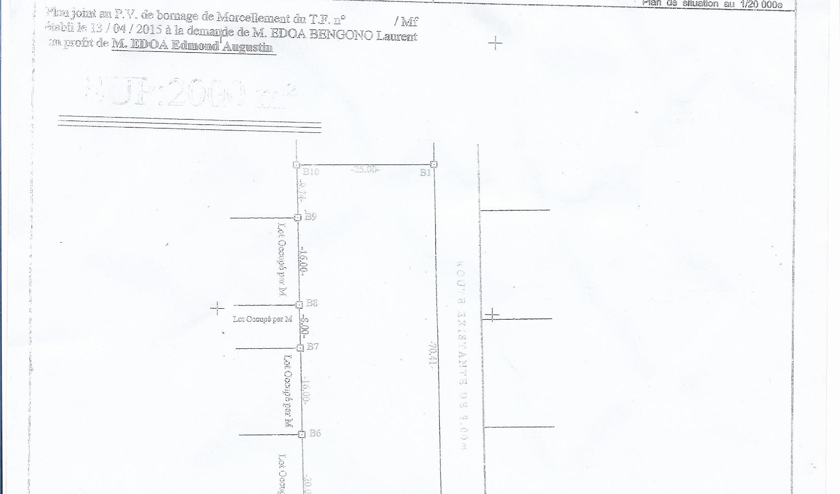 Terrain titré, lotis de 2000m2 initial; 1000m2 disponible
